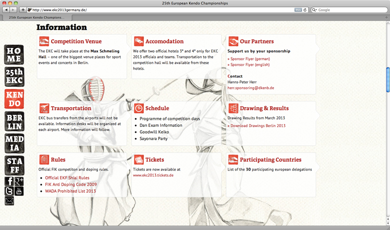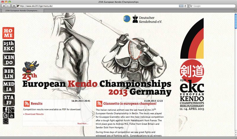 Concept and Design for the Website of the 25th European Kendo Championships 2013 held in Berlin, Germany